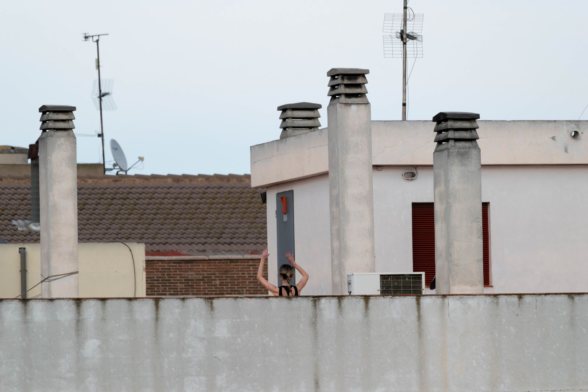 Una mujer, durante el confinamiento por Covid19, hace gimnasia en la azotea del edificio donde vive. Todos los dáis a la misma hora subía a realizar sus ejercicios.
